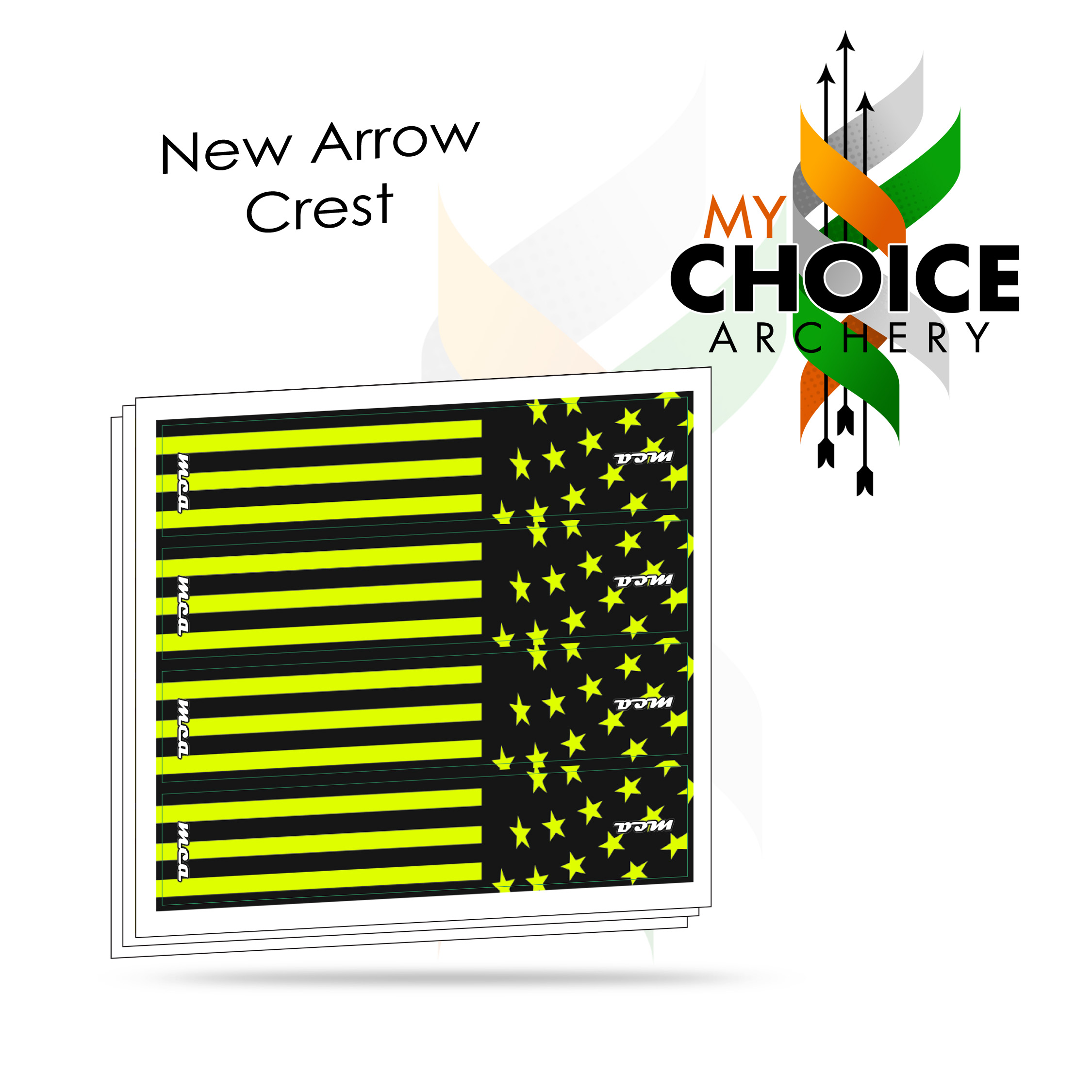 25 duplicated by 20589 16 179.00 0 MCA00095 17 0 50 95069990 -2--25- ARROWS > Vanes N Vanes MCA Arrow Crest 26-13 - Stripes and Stars Yellow MyChoiceArchery
